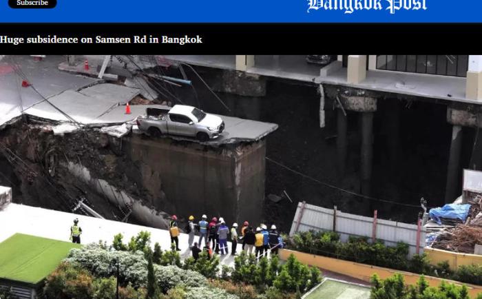 泰国通往曼谷的道路大规模倒塌,形成了一个大